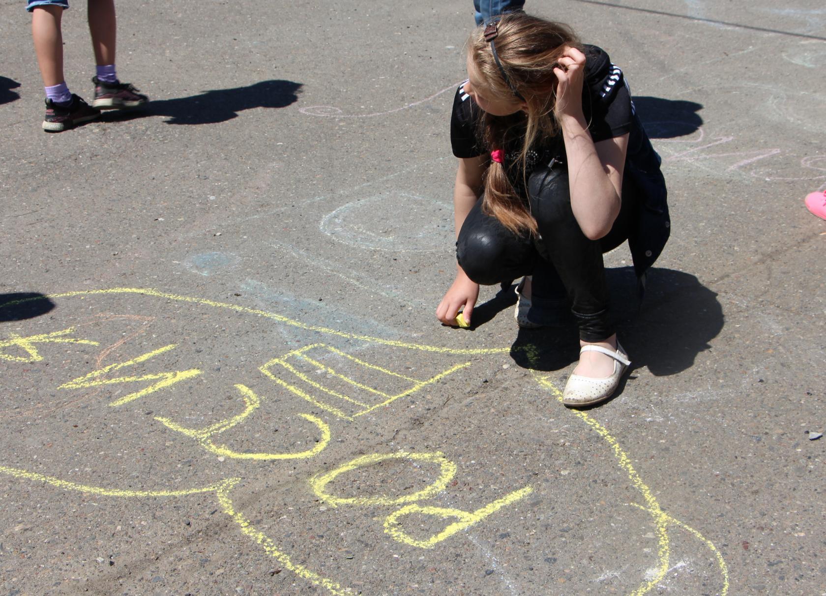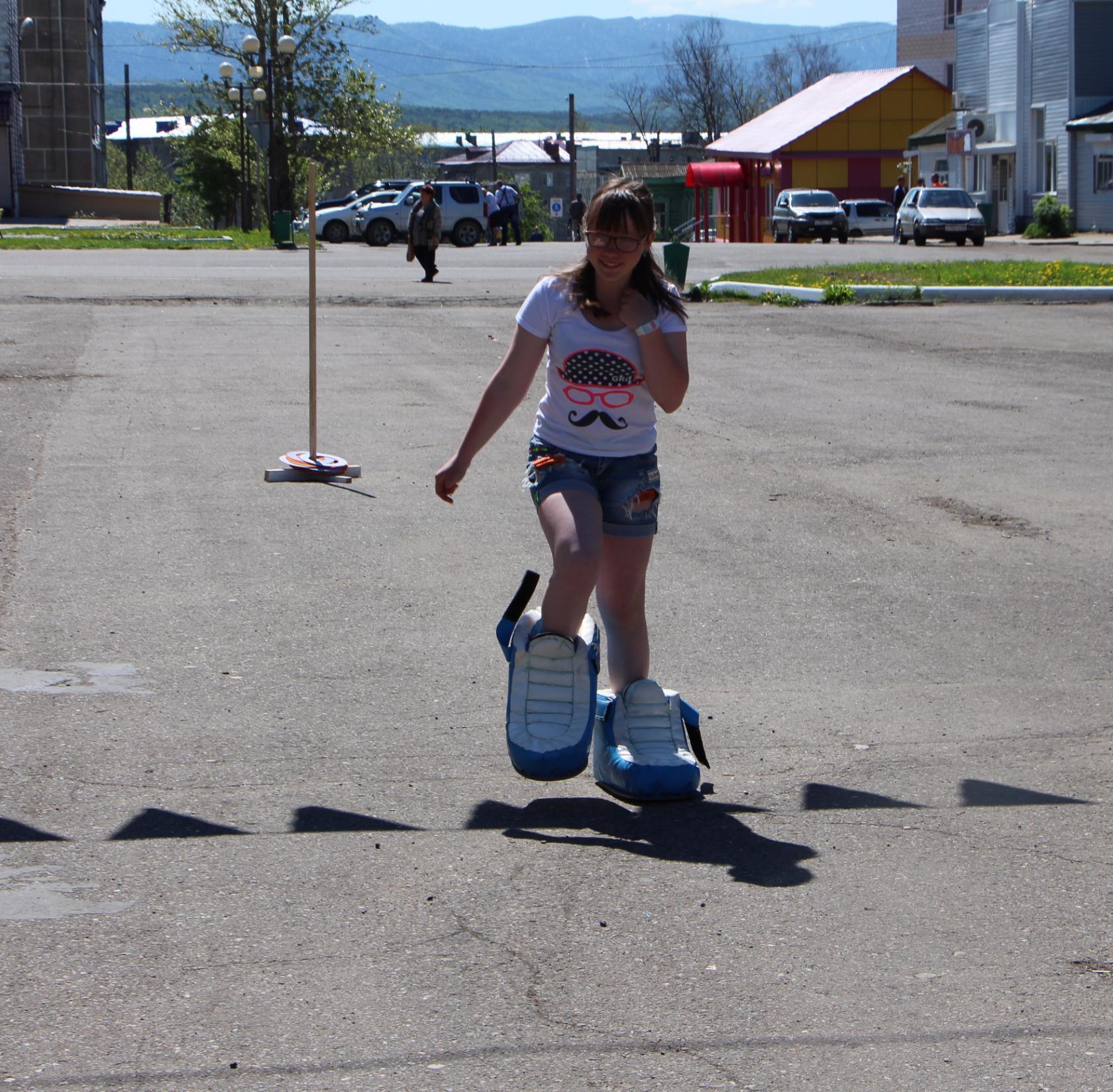 рисунки на асфальте, многочисленные викторины и игры, и аттракцион «Батут»,